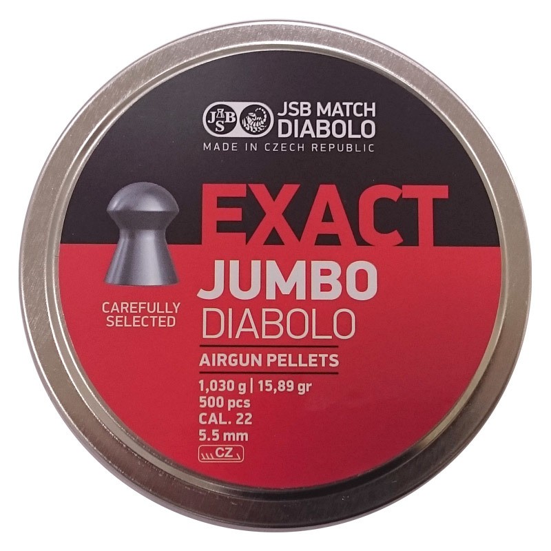 JSB Exact Jumbo saçmalarının; ağırlıkları, özel olarak tasarlanmış şekilleri ve ağırlık merkezinin mükemmel dağılımları sayesinde uzun mesafeli atıcılık için kullanılabilecek en uygun saçma modelidir. Saçmalar 45 metre atışlarında test edilmiştir. 5 atış sonrasında gerekli sonuç merkezden merkeze en fazla 16mm dir.