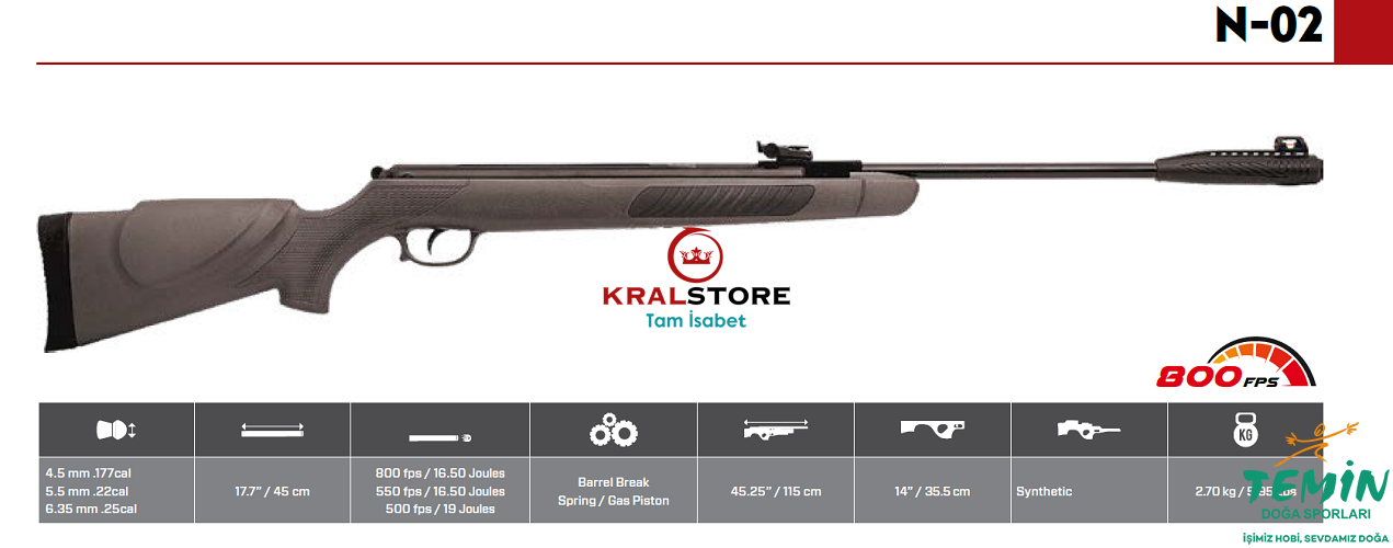 Kral Arms N-02 Sentetik Yaylı Havalı Tüfek