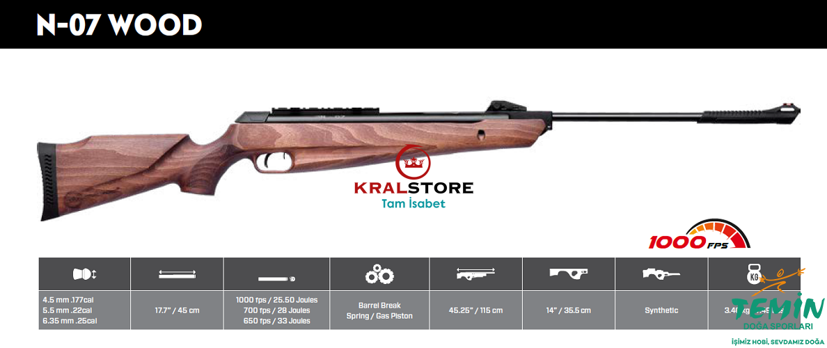 Kral Arms N-07 Wood Yaylı Havalı Tüfek