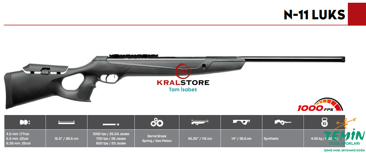Kral Arms N-11 Lüks Sentetik Gaz Pistonlu Havalı Tüfek
