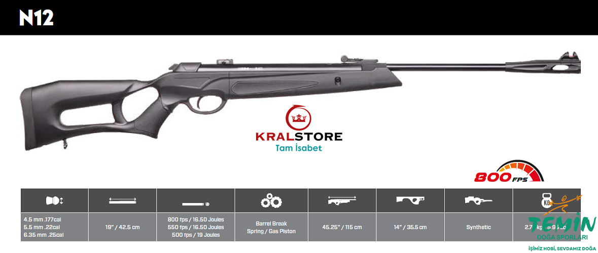 Kral Arms N-12 Sentetik Gaz Pistonlu Havalı Tüfek