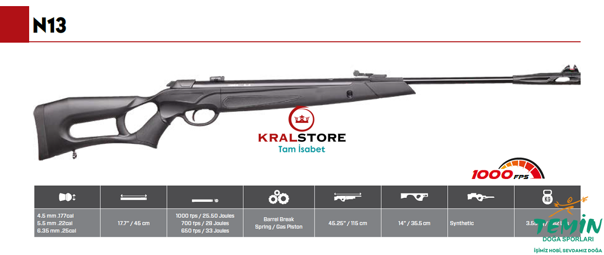 Kral Arms N-13 Sentetik Yaylı Havalı Tüfek