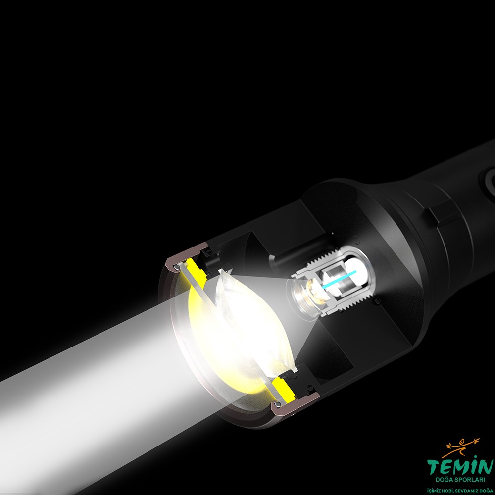Lazer Uyarılı Fosfor Teknolojisi ile 1300 metre gibi aşırı uzun mesafeli, kolay şarj edilebilen P9R fener, arama-kurtarma ekipleri, denizcilik sektörü, avcılar, balıkçılar ve outdoor için idealdir.