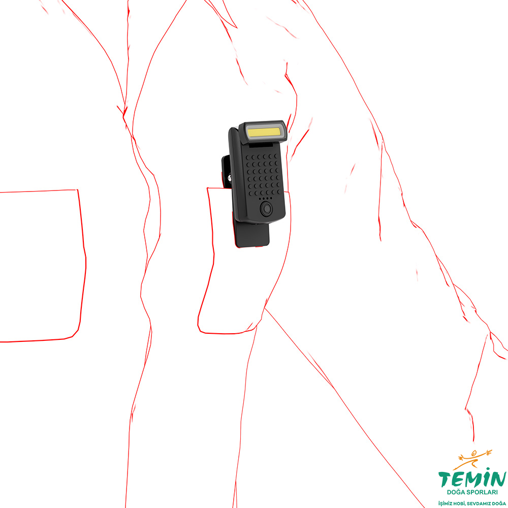 Hassas ve esnek aydınlatma için iki parlaklık düzeyine sahip ultra kompakt, şarj edilebilir klipsli ışık 360°döner bağlantı ve döner lamba kafası.