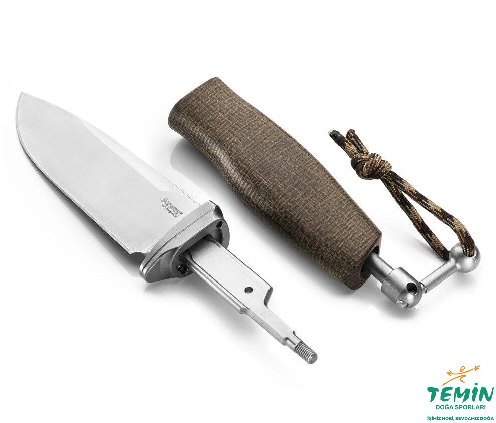 SOLID sap, Burlap Micarta'nın üç farklı varyasyonunda mevcuttur ve ergonomisi, bıçak kullanıcısının eline her türlü tutuşla rahatça oturur.