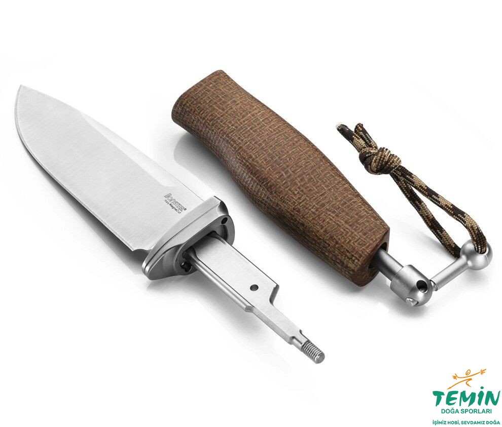 SOLID sap, Burlap Micarta'nın üç farklı varyasyonunda mevcuttur ve ergonomisi, bıçak kullanıcısının eline her türlü tutuşla rahatça oturur.