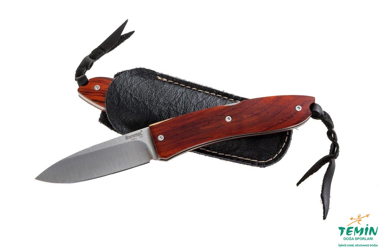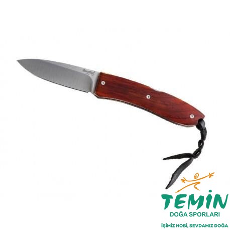Kordon deliğine sahip çakı kaliteli ve siyah renkli deri kılıfıyla sunuluyor. Kordon deliğine, örgülü bir deri kordon takılmış ve çakıyı kılıfından çıkarmak daha kolay kılınmıştır.