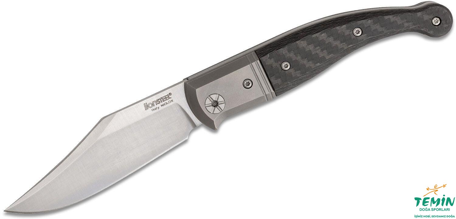 Çakının yüksek düz ağız açımı (high flat grind) uygulanan namlusu, sapından daha geniştir. Sivri uç (clip point) yapısındaki namluda, uç kısmın arkası inceltilmiştir. Sırt kısım, bir Lionsteel klasiği olarak yuvarlatılmıştır ve başparmak desteklerinde hem kontrolü artırmakta hem de rahatsızlık vermemektedir. Keskin kenarın altındaki minik çentik, kesmeye saplayarak başlamaya hizmet etmektedir.