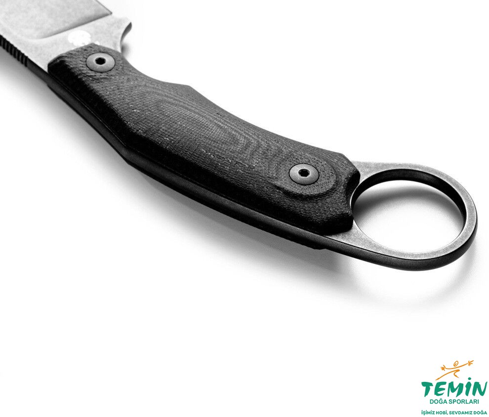 İzlediğiniz üründe siyah kaplama ve siyah G10 sap malzemesi kullanılmıştır. Kaydırmaz niteliğiyle bilinen sap malzemesi üzerinde üç boyutlu çalışılarak rahat ve sağlam kavrama geliştirilmiştir. Sap malzemesinin yerine takılmasında cıvatalardan faydalanılmıştır.