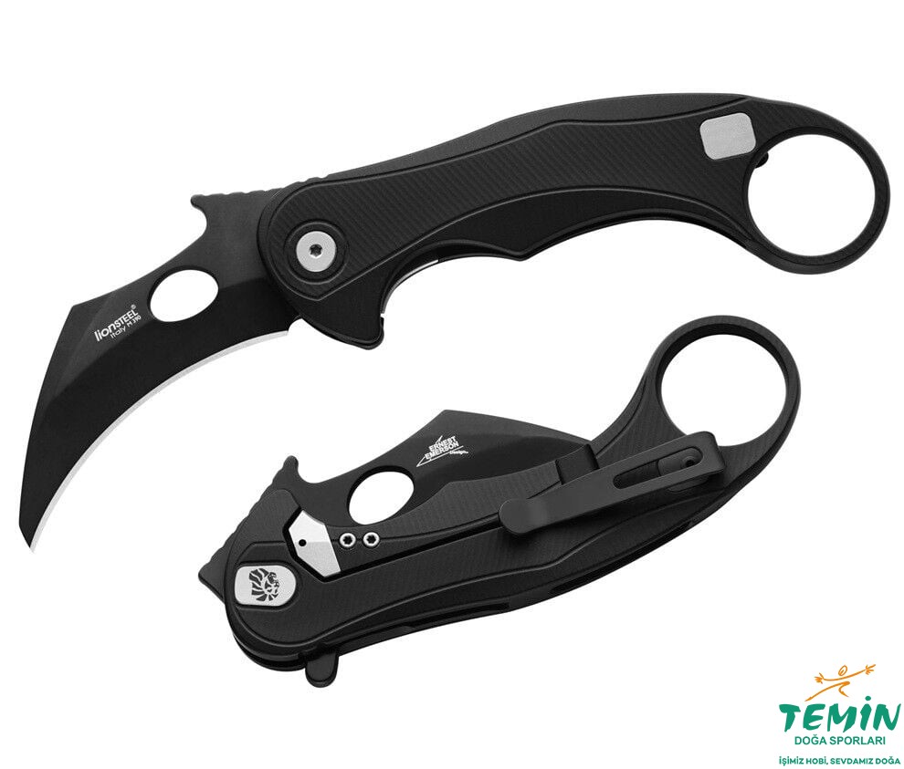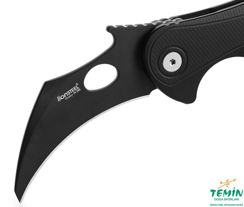 Lionsteel L.E.One Mid-Black/Black; SOLID çerçeve kilitli alüminyum sap, Bohler M390 namlu ve Emerson açma özelliğiyle 84 gr’lık kompakt bir karambit çakıdır.