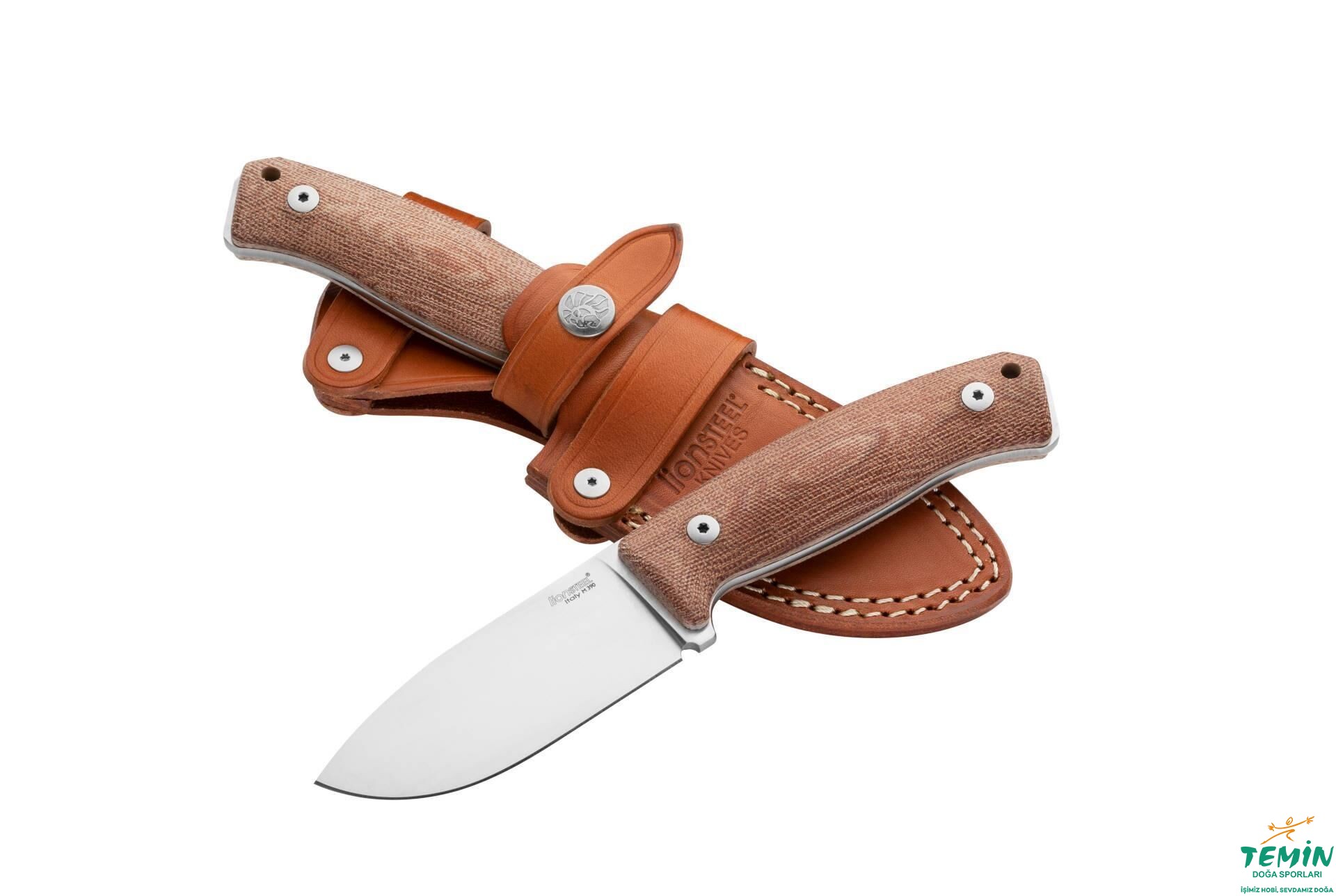 “Küçük ama sağlam” av/kamp bıçağı: üç boyutlu mikarta sapla daha rahat kavrama, microclean M390 ile uzun süre keskinlik. Extended tang ve zengin taşıma seçenekli deri kılıf.