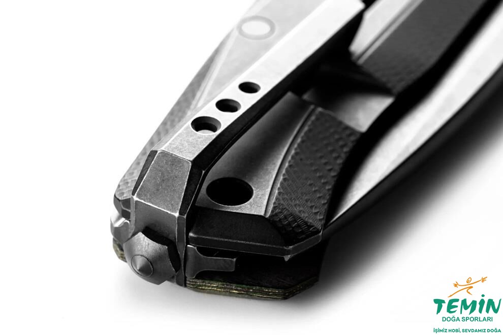 Bıçak daha dengelidir ve daha yumuşak bir hareketi kolaylaştırır. Titanyum SOLID® klips, titanyum çerçeveye bir tungsten karbür cam kırıcı ile tutturulmuştur. Kilitleme çubuğu, bıçağın dönmesi nedeniyle titanyum çubuğun aşınmasını önlemek için sertleştirilmiş çelik bir parça ile güçlendirilmiştir.