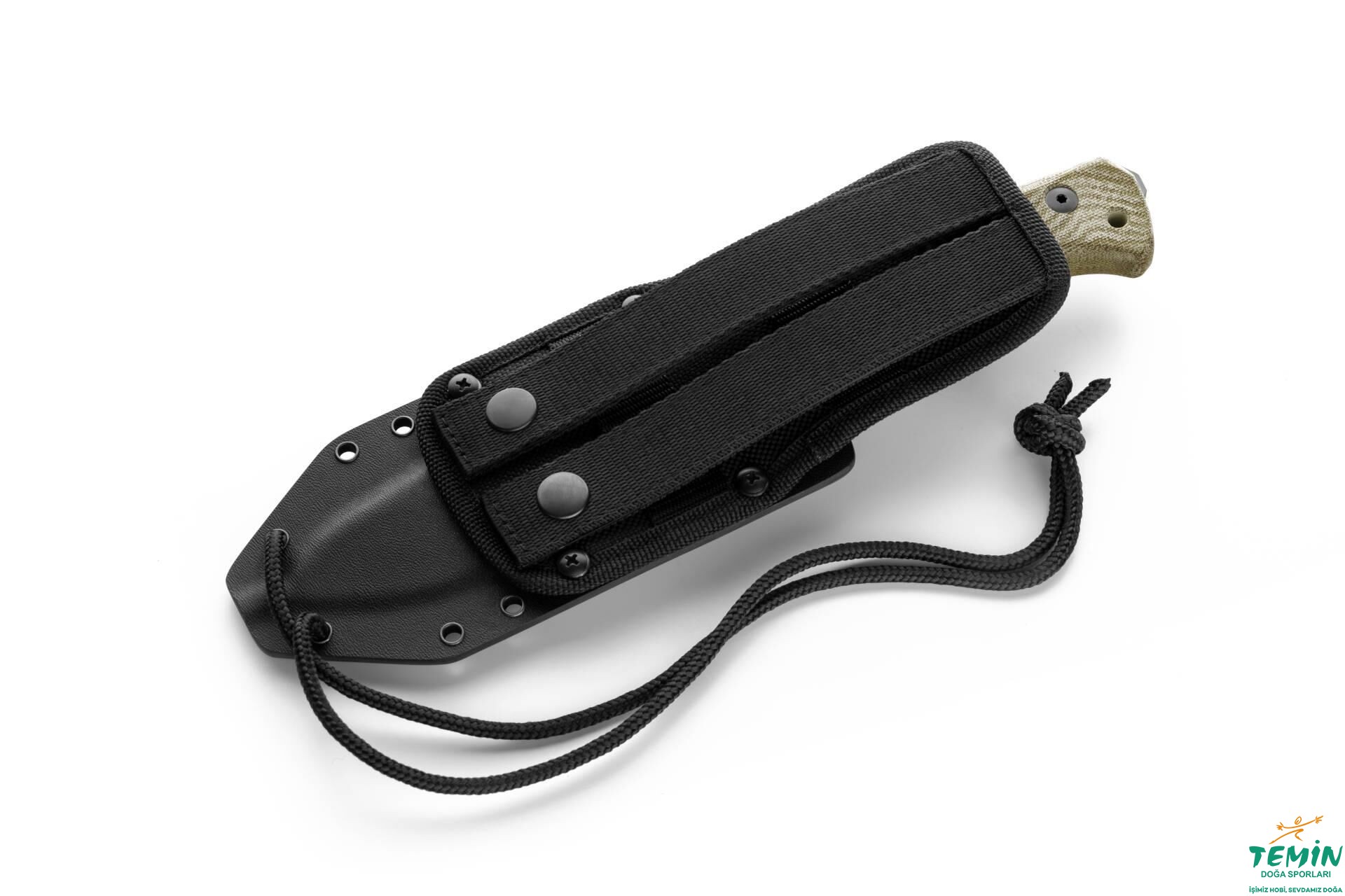 Sapının dip kısmına doğru bir kordon deliği (lanyard hole) bulunan bıçak, MOLLE (Modular Lightweight Load Carrying Equipment-Modüler Hafif Yük Taşıma Ekipmanı. Bu sistem kendisine uygun parçaların birbirine eklenmesine yarayan ordu kaynaklı bir standart içermektedir.) uyumlu kydex kılıfı ile sunulmaktadır. Kydex kılıfa farklı biçimlerde vidalanabilen cordura bağlantı elemanı sayesinde zengin taşıma seçeneklerine kavuşulmuştur.