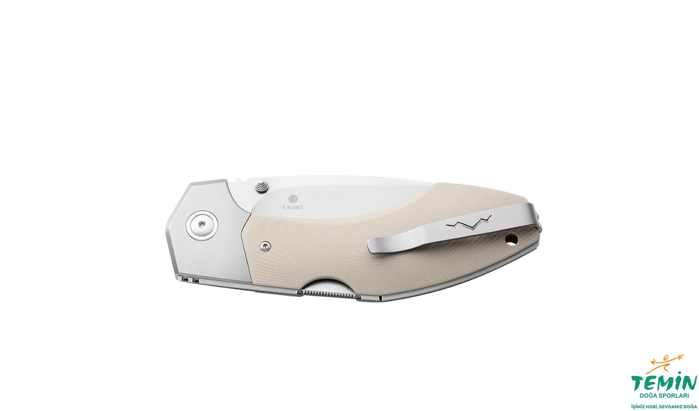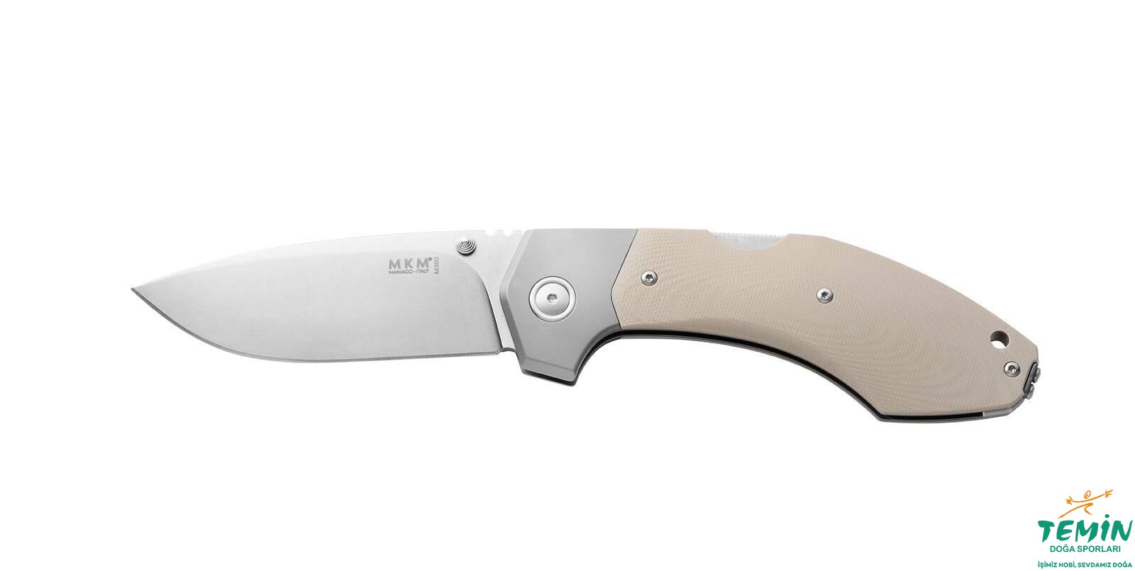 İzlediğiniz ürün (MK HR-GTTN: MKM Hero Tan G10), sarımsı kahverengi renkte (tan) G10 sap malzemesine sahiptir. G10 sap malzemesi, dayanıklı ve sağlam yapısı ile bilinmektedir. Keskinliğini uzun süre devam ettirecek ‘‘micro clean sıfatlı’’ namlu, taşlanarak (stonewash) mat ve dayanıklı kılınmıştır. Ara parçalar da taşlanmış (stonewash) ve sırtları, namluyla uyumlu kılınmıştır. Pivot bağlantı elemanının pulu (Bu pul, koleksiyonun alametifarikası hâlindedir.), titanyumdur.