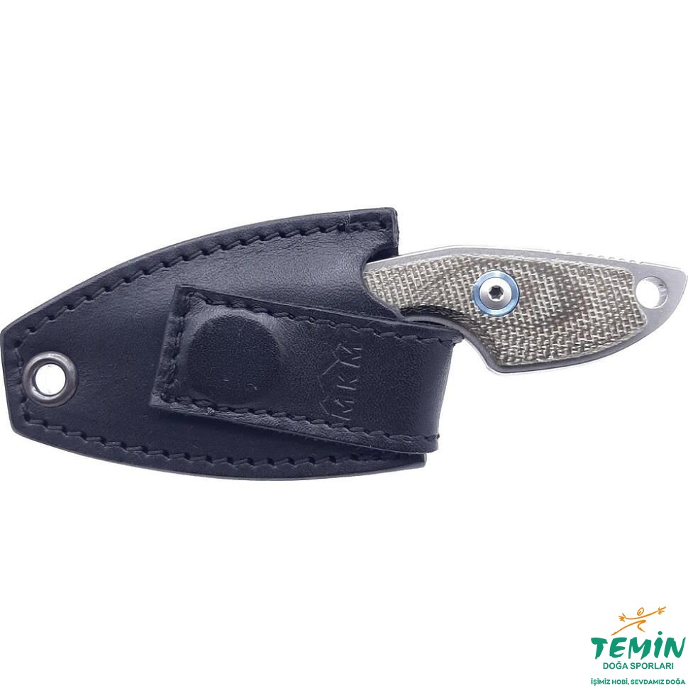 Sap kısmının dibinde kordon deliğine (lanyard hole) de yer verilen bıçağın, deri kılıfı (siyah) bulunmaktadır. Kılıfın tasarımına özen gösterildiğini belirtmek gerekir. Öncelikle bıçak, her iki yönü ile de kılıfa girebilmekte ve bu sayede sağ ya da sol elini kullananlar için problem oluşturmamaktadır. Çift taraflı manyetik kilide (Bıçağın düşmemesi için önden ya da kılıfın giysilere entegre olabilmesi için arkadan sabitlenebilir.) ve kordon deliğine sahip kılıf sayesinde bıçağı, cepte (Kılıfın manyetik kilidi, kumaşı sıkıştırarak onun üzerinden arka tarafa sabitlendiğinde, cepte tutunma sağlamaktadır.) ya da boynunuza asarak (Bıçakla birlikte deri kordon da verilmektedir.) taşıyabilirsiniz.
