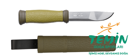 Morakniv 2000, çok yönlülüğü kombine açım (Combine grind) ile pekişmiş bir bıçak. Dip kısımdaki dar ve düz ağız açımı (Scandi), bir noktada yumuşak bir geçişle tam (full) ağız açımına dönüşüyor. Bu sayede hem güç gerektiren kaba işlere hem de dikkat gerektiren ince işlere uygun bir bıçak ortaya çıkıyor. Mora, ilk kez 1990'lı yılların başında kullanmaya başladığı, uç noktaya doğru tam (full) ağız açımına varan yapıyı (profile grind) ismiyle anıyor. Bıçak, soğuk haddelenen (düzgün yüzey ve hatasız boyutlar elde edilen bir inceltme işlemi) İsveç paslanmaz çeliğe ve iyi kavranması için dokulandırılmış TPE (termoplastik kauçuk) sapa sahip. Bu malzeme soğuğa karşı da yalıtım sağlıyor. Siyah sapın ön ve arka balçakları, bıçağın polimer kılıfı gibi, kamuflaj sağlayan hâki renkte.