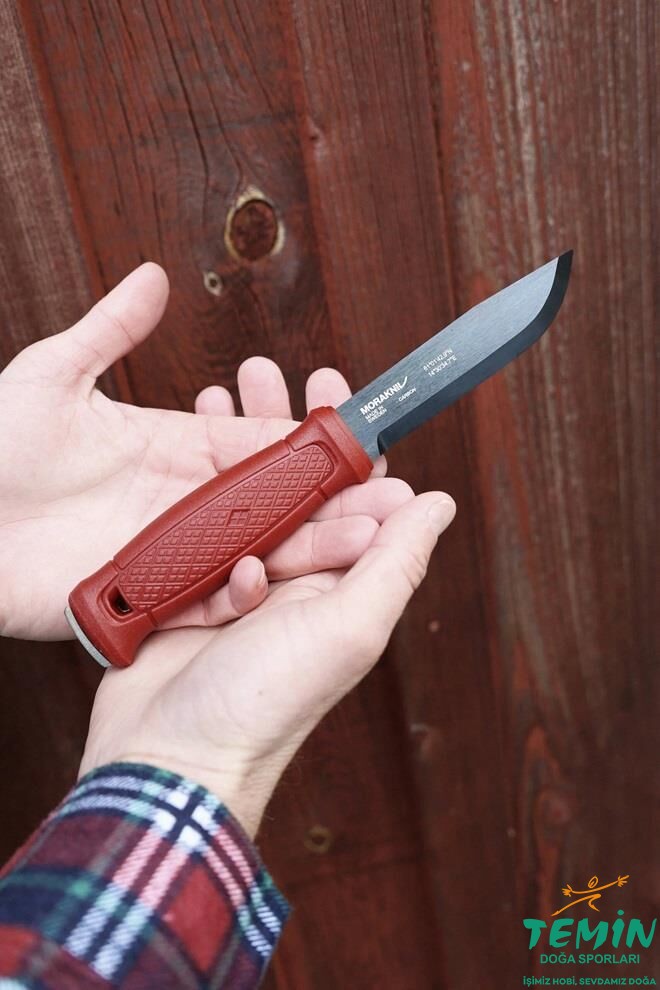 Maceracılar için tasarlanan bu bıçak, elinizin altında bulundurmanız gereken güvenilir ve sağlam bir alettir. Bıçağın polimer sapı ergonomik bir namlu şekline sahiptir ve sürtünmeli kavrama, parmak koruması ve karbon çeliğinden yapılmış 3,2 mm kalınlığında bir bıçağa sahiptir. Bu kombinasyon her kesimde güç ve denge sağlar. Bıçak, paslanmaya karşı koruyan ve yansımaları önleyen siyah bir DLC kaplamaya sahiptir. Simetrik polimer kılıf, hem sağ hem de sol elini kullanan kullanıcılar için uygundur ve kemerinize kolayca takılabilen İsveç derisinden yapılmış bir kayışa sahiptir. Karbon çeliğinin paslanmaya eğilimli olduğunu unutmamak önemlidir, bu nedenle kullanımdan sonra bıçağın silinmesi ve yağlanması önerilir. Bıçak Mora, İsveç fabrikasında üretilmiştir.
