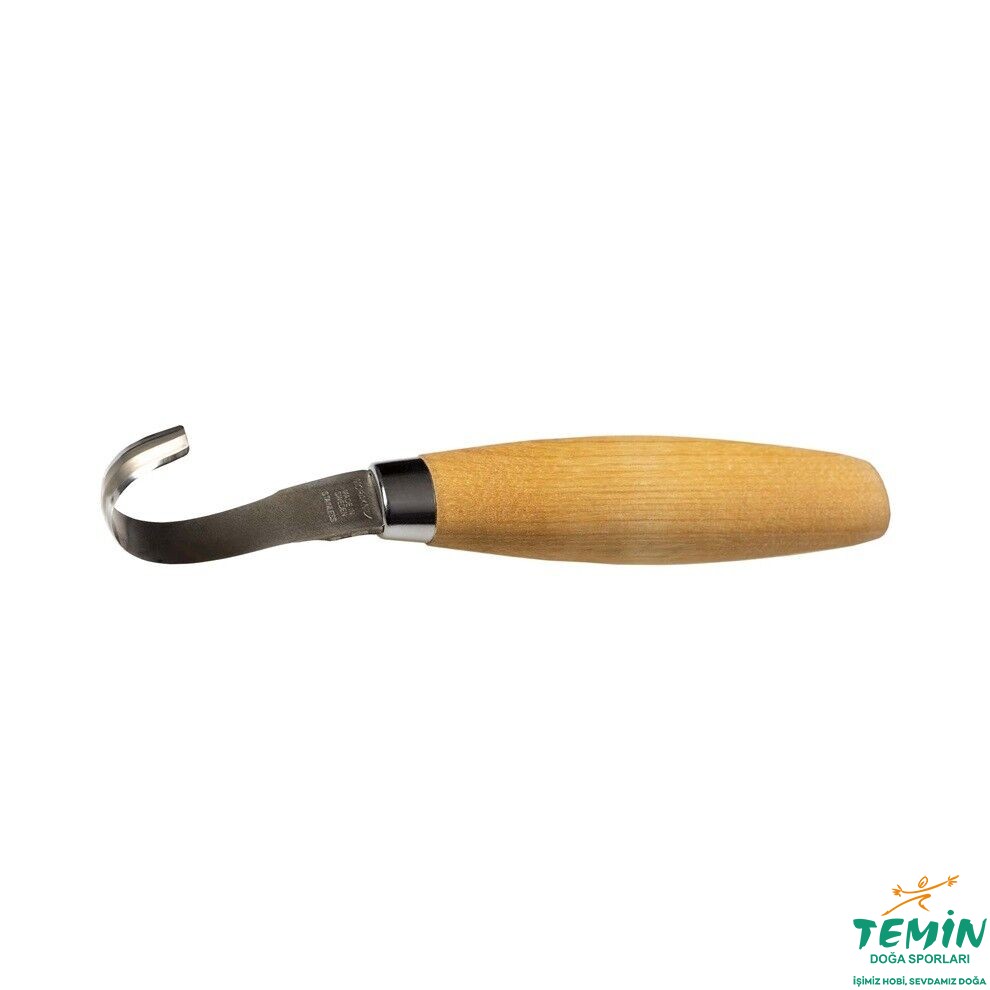 Kanca Bıçak 162 Çift Kenarlı (S), sıkı kavisli ve her iki tarafı da keskinleştirilmiş 55 mm'lik bir bıçağa sahiptir - bu da onu kepçe veya kase gibi derin oymalar için ideal hale getirir. 2 mm kalınlığındaki bıçak, geri dönüştürülmüş İsveç paslanmaz çeliğinden yapılmıştır ve mükemmel kenar tutma özelliği sunar. Tam kuyruk tang güç ve denge sağlarken, yağlı İskandinav huş ağacı sapı doğal ve rahat bir tutuş sunar. Her bıçak, birinci sınıf İsveç bitkisel tabaklanmış deriden yapılmış bir deri kılıfla birlikte gelir.