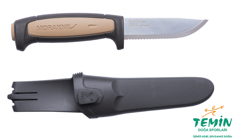 Daha güvenli ve hızlı kesim için: keskinliğini uzun süre koruyan tırtıklı ağız + iyi kavrayan TPE sap ve geniş koruma. İsveç paslanmaz 91 mm; polimer kılıflı.