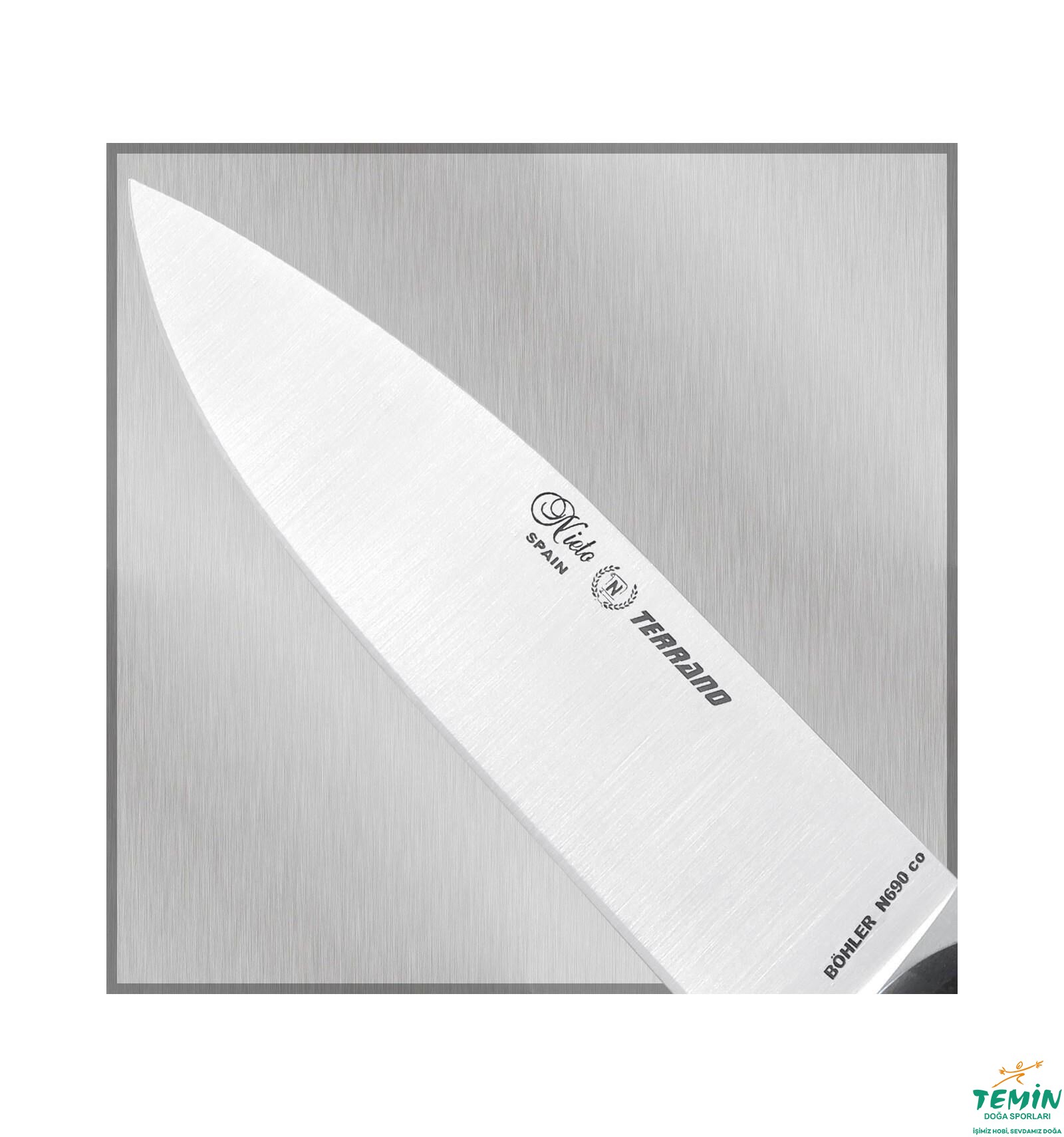 Arazi anlamına gelen Terrano, bushcraft kullanımı göz önüne alınarak üretilen bıçaktır. Değişik sap ve çelik seçenekleri bulunan ve Nieto’nun Böhler atılımının bir parçası olan bıçak, iki farklı ağız açımı ile üretilmektedir. İzlediğiniz ürün tam düz (full flat) ağız açımına sahiptir ve namlusu uca doğru incelen yapıdadır. Diğer seçenekten (Scandi) daha hafiftir, daha kolay saplanabilmektedir, daha ince ve hassas kesimler yapabilmektedir.