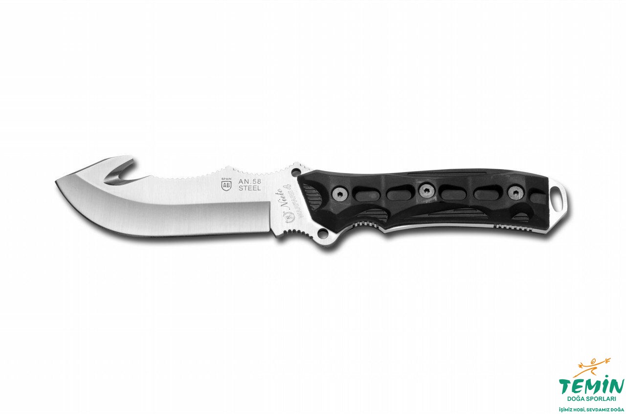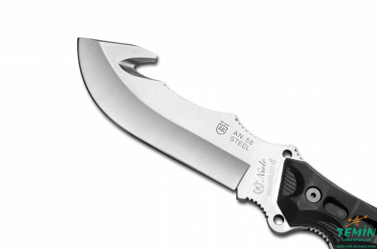 Bıçak çeliği olarak AN-58 (Bıçak çeliğinde aranan temel özellikleri -sertlik, paslanmaya direnç, keskinliği muhafaza etme ve darbe dayanımı- bünyesinde toplayan bir çelik üretmek isteyen Nieto, Castilla-La Mancha Üniversitesinin bu özellikleri garanti etmesiyle, 2007 yılından beri ürünlerinde kullandığı, AN-58’i üretmektedir. Paslanmaz kategorideki bu çelikten, ısıl işlem sonrası 58-60 HRC sertlik elde edilmektedir.) kullanılmıştır. Yuvarlak uç (drop point) yapısındaki bıçağın uç kısmının arkasında, çengel şeklinde kesiciye (takıp çekilerek yapılan kesimlerde etkili bu unsur; ip, kemer ya da giysilerin kesilmesinde veya av hayvanının içinin açılmasında kolaylık sağlamaktadır) yer verilmiştir.