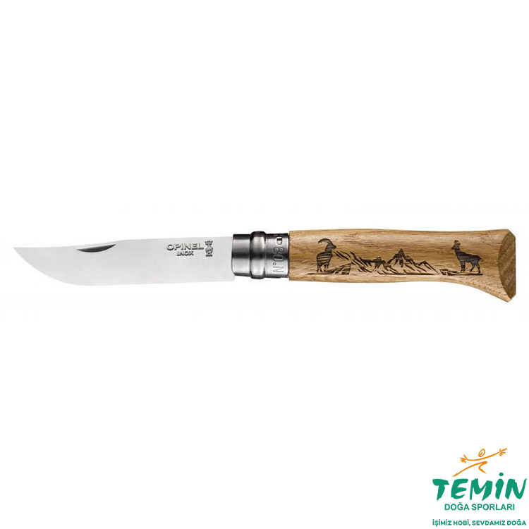 Opinel Inox Meşe Saplı Dağ Keçisi Desenli Paslanmaz Çelik 8 No Çakı