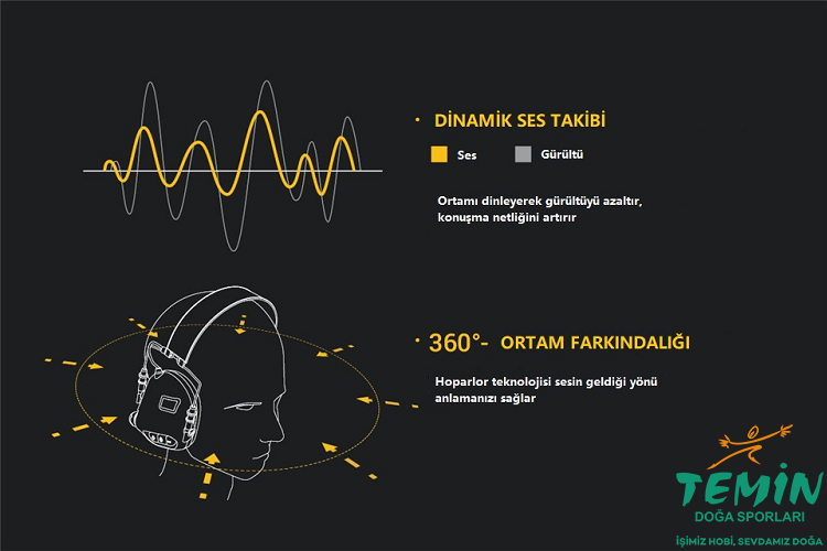 82 dB'nin üzerindeki zararlı gürültüyü bastırır
