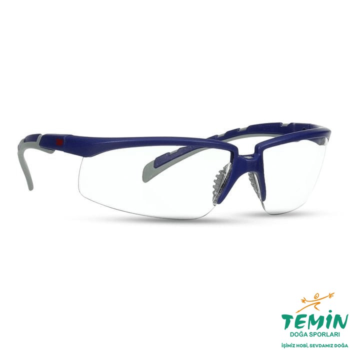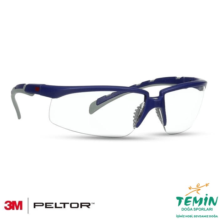 Şeffaf 3M Peltor Blu atış gözlüğü; U6 polikarbon lens ile %99,9 UV koruma (200–380 nm). Scotchgard buğu önleyici kaplama + çizilme direnci, ayarlanabilir saplarla günlük kullanımda pratik seçim.