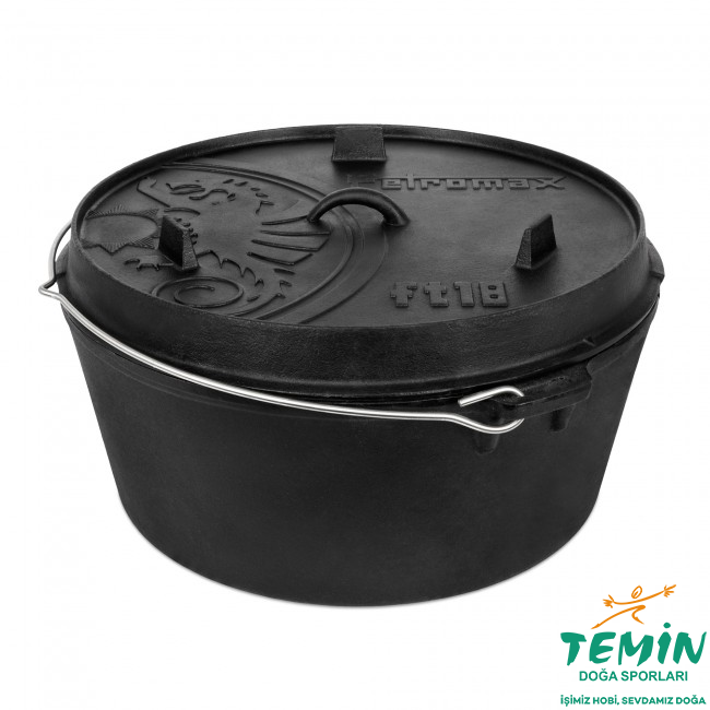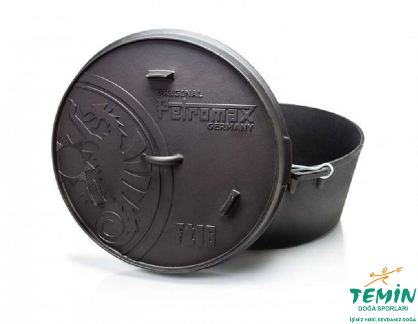 Düz bir alt yüzeye sahip dökme demirden yapılmış en büyük Petromax tencere