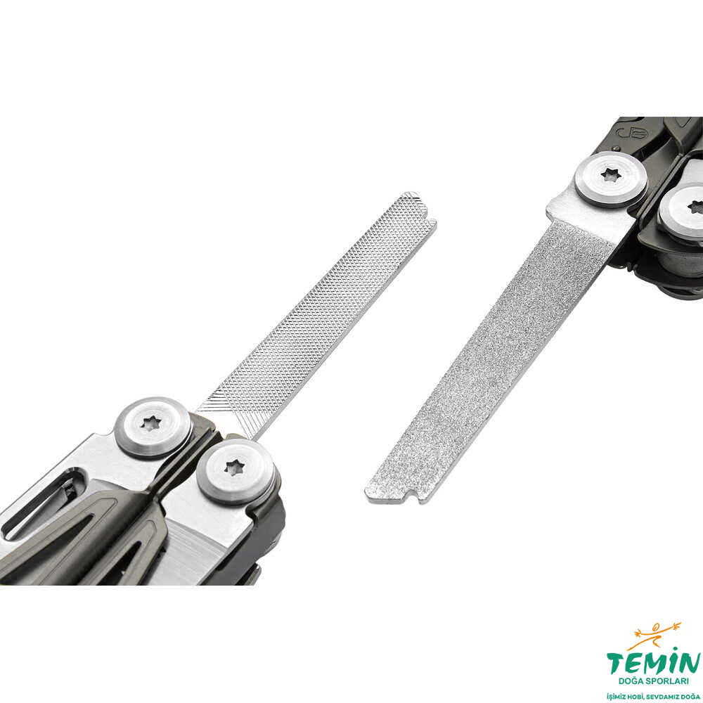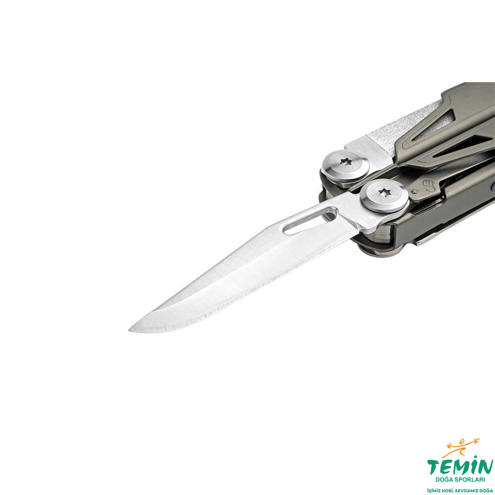 Multitool Pense Fonksiyonları : Titanyum kaplamalı sapı ile katlı haldeyken bile erişilebilen çoklu aletler içerir. Bunlar arasında tırtıklı halat bıçağı, cep bıçağı, testere, ahşap ve metal eğeleri, tel sıyırıcı, sert ve normal tel kesiciler, standart pense, iğne burun pense, sıkıştırma pensesi, konserve ve şişe açacakları, cetvel, yaylı makas, düz ve yıldız tornavidalar, büyük düz tornavida ve gözlük tornavidası yer alır.