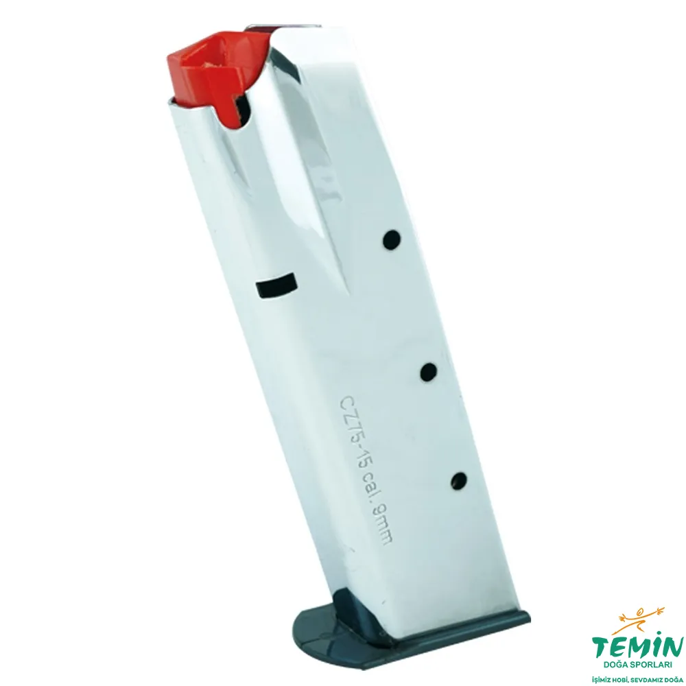 Sabatti CZ75 Tabanca Şarjörü (Nikel); CZ75 ailesi için tasarlanmış, nikel kaplama yüzeyi sayesinde korozyona karşı daha dayanıklı ve temizliği pratik bir yedek şarjör seçeneğidir.
