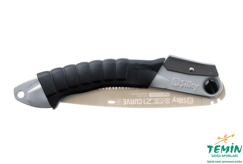 Super Accel Curve, kavisli bıçağa ve nikel kaplamaya sahip hafif bir katlanır testeredir. Her 30 mm'de 8 olan kaba dişler taze ahşap için çok uygundur.