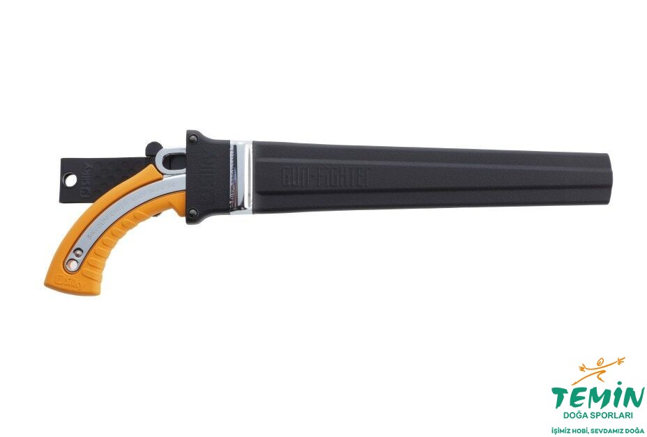 Gunfighter, kolay testere bıçağı değişimi için hızlı değiştirme sistemine ve ele rahatça oturan tabanca şeklinde ergonomik bir sapa sahiptir. Bahçe ve orman kesimleri için çok yönlü testere.