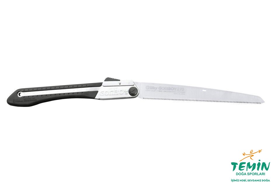 Orta dişlere sahip Silky'den Gomboy 270-20, barınak yapımında, yakacak odun hazırlamada veya ormanda yemek pişirmek için ızgara hazırlamada dış mekan kullanımına sahip çok işlevli, katlanabilir bir testeredir. Hayatta kalma ekipmanları için ideal bir tamamlayıcıdır. Kuru ahşap kesimleri için uygundur.
