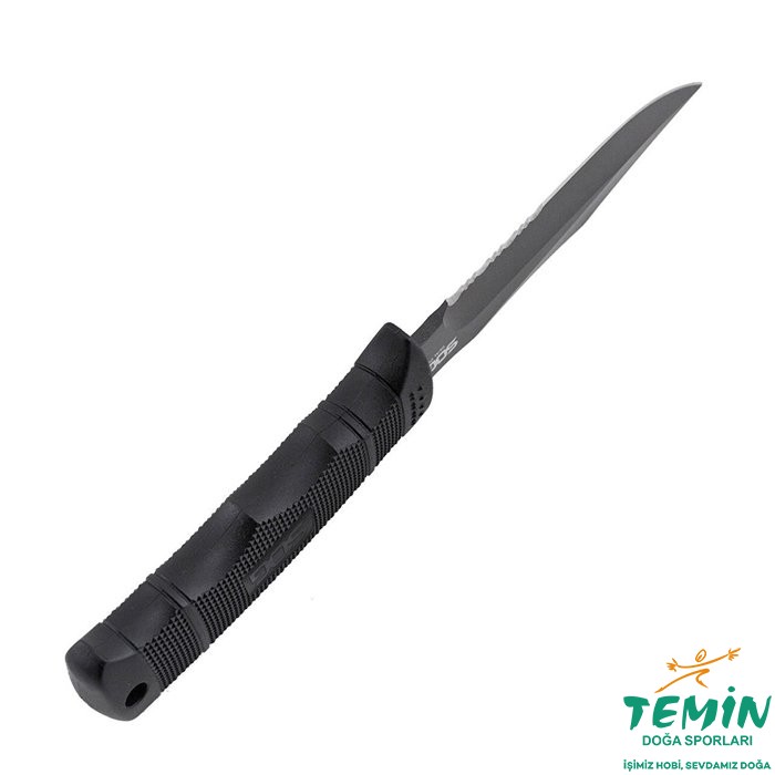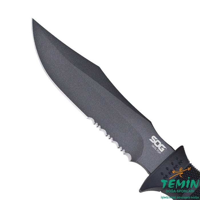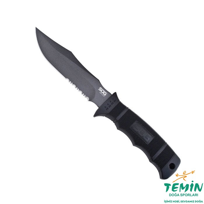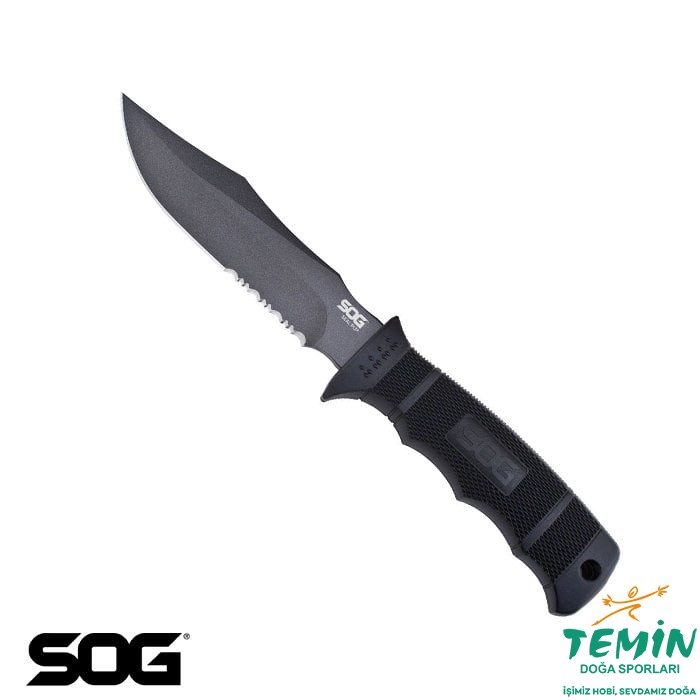 SOG M37N Seal Pup bıçak düşük yansıma ve aşınma direnci için toz boya ile kaplanmış kısmen tırtıklı bir bıçağa sahiptir. Sap kısmı, hafif, cam takviyeli plastik ile üretilmiştir . Zorlu hava koşullarında güvenli tutuş için konforlu ve ergonomik bir tasarıma sahiptir. Şık kılıfıyla güvenli taşınabilmektedir.