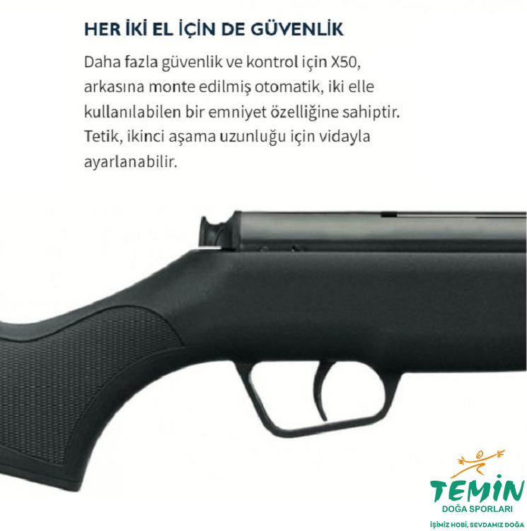 Stoeger X50 hassas tetik yapısı, hedefe isabetteki yüksek oranı ile magnum model tüfekler arasında sağlam, güçlü piston, namlu ve gövde yapısı sayesinde eşsiz özelliğe sahiptir.