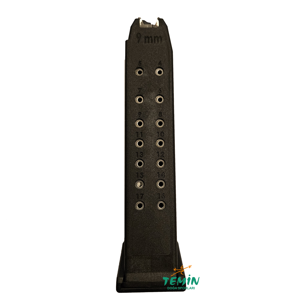 9mm Parabellum Glock 19 ve Glock 17 model tabanca için 17 mermi kapasiteli yerli üretim şarjör