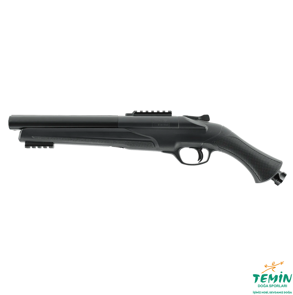 Umarex T4E TS 68 Gen2, klasik tabanca formundan çok kompakt bir shotgun / çift namlulu tüfek gibi konumlandırılmış bir markör. .68 kalibre bilyeler: