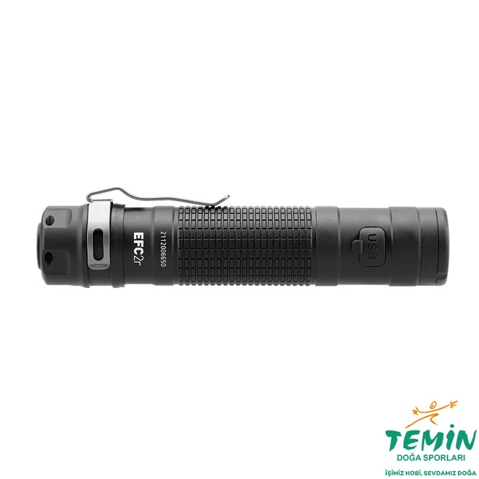 5-40-350 ve 1200 lümen olmak üzere çok geniş parlaklık skalasına sahip EFC2r el feneri hem iç mekan hem de dış mekanda kullanılmak üzere tasarlanmış çok yönlü ve kullanışlıdır. Kullanılan pilin gücüne göre maksimum parlaklık çıkışı 1000 lümen ile 1200 lümen arasında değişmektedir. Sahip olduğu bellek ünitesi ile en son kullanılan parlaklık seviyesinde açılır. Kullanılabilir pil kapasiteis %25'in altına düştüğünde kullanıcıyı uyaran bir sinyal verir. IPX8'e göre su geçirmezdir ve beraberinde kılıf, kordon, pil, şarj kablosu, pil adaptörü ve yedek conta ile birlikte gelir.