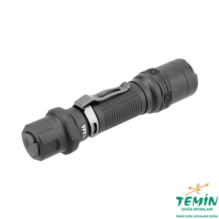 Özellikle polis kullanımı için tasarlanan şarj edilebilir TFC1r, birçok ayrıntıda günlük iç ve dış mekan uygulamalarına yönelik el fenerlerinden farklılık gösterir. Öncelikle flaş modu, el feneri kapalıyken herhangi bir gecikme olmadan etkinleştirilebiliyor. 21700 şarj edilebilir pille (dahil) çalıştırılır ve dört parlaklık seviyesi sunar (5/50/300/1500 lümen). Pil, muhafazaya entegre edilmiş bir USB-C soketi aracılığıyla şarj edilir. Güç ayrıca 18650 şarj edilebilir Li-ion pil (maks. 1400 lm) veya iki CR123 pil (maks. 1000 lümen) ile de sağlanabilir. Bir bellek ünitesi, TFC1r'nin her zaman en son kullandığınız seviyede açılmasını sağlar. Kullanılabilir pil kapasitesi %25'in altına düştüğünde bir sinyal verilir. Sağlam alüminyum muhafaza sert anodize edilmiştir ve su geçirmezdir. Naylon kılıf, taktik halka, kordon, 21700 şarj edilebilir Li-ion pil, şarj kablosu, pil adaptörü ve yedek conta ile birlikte gelir.