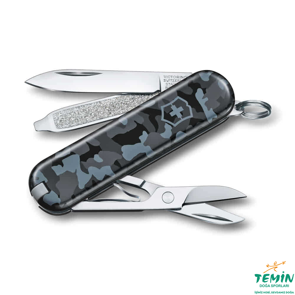 Victorinox 0.6223.942 Classic Lacivert Kamuflaj Çakı Fonksiyonları :