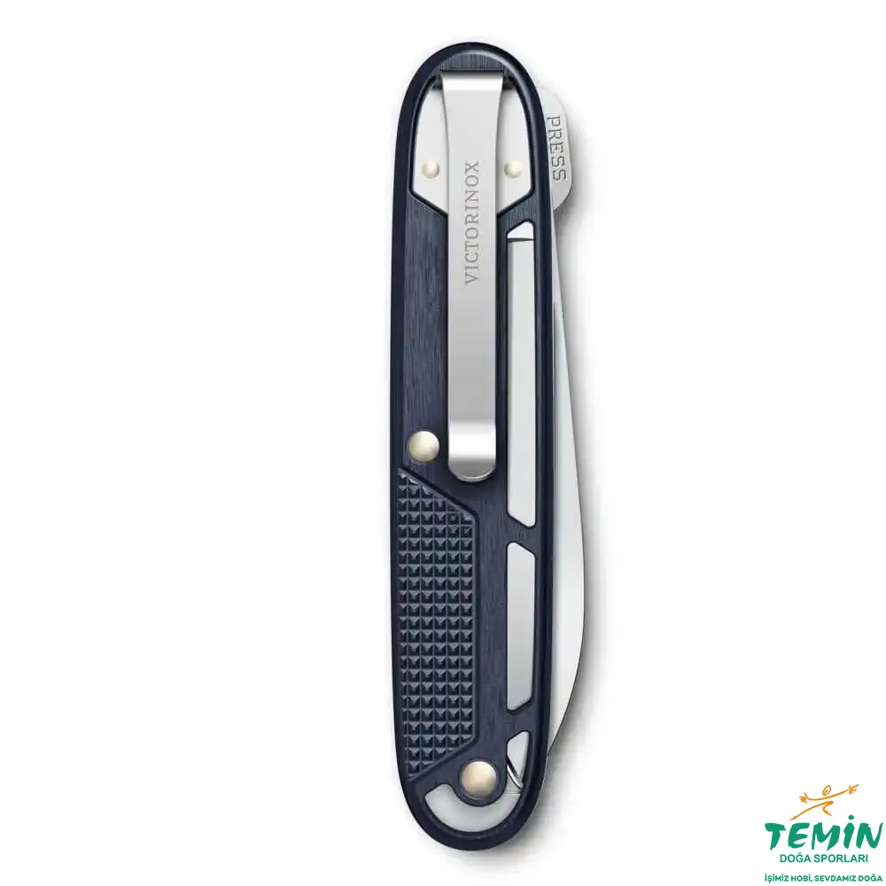 İskelet yapılı mavi Alox alüminyum kaplamalar, hem Victorinox’un ikonik çizgisini korur hem de bıçağa modern, teknik bir görünüş katar.