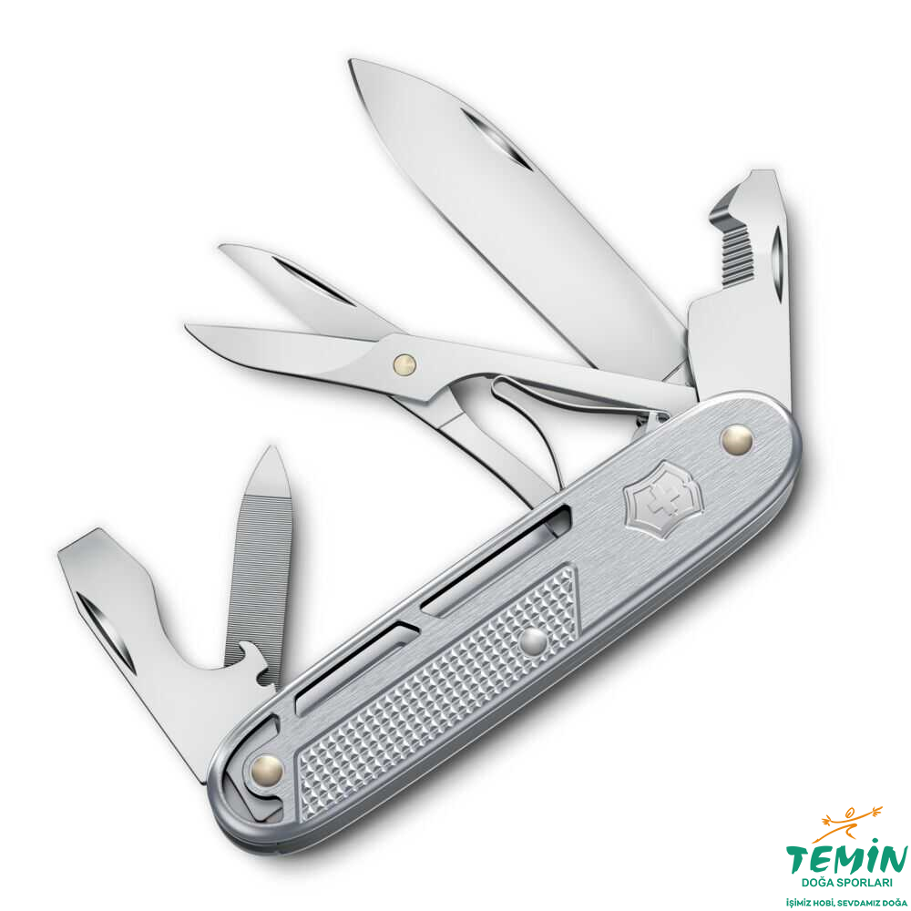 Kilitli büyük bıçak, hassas makas, iki farklı düz tornavida, tel sıyırıcı ve kutu/şişe açacağı; günlük kullanıcı için gerçek anlamda “doluluk” sunarken, Victorinox’un X55CrMo14 çeliği ve Alox gövde yapısı uzun ömürlü ve güvenilir bir kullanım sağlar.