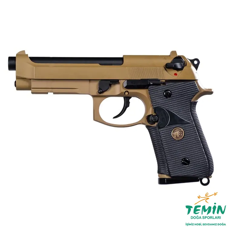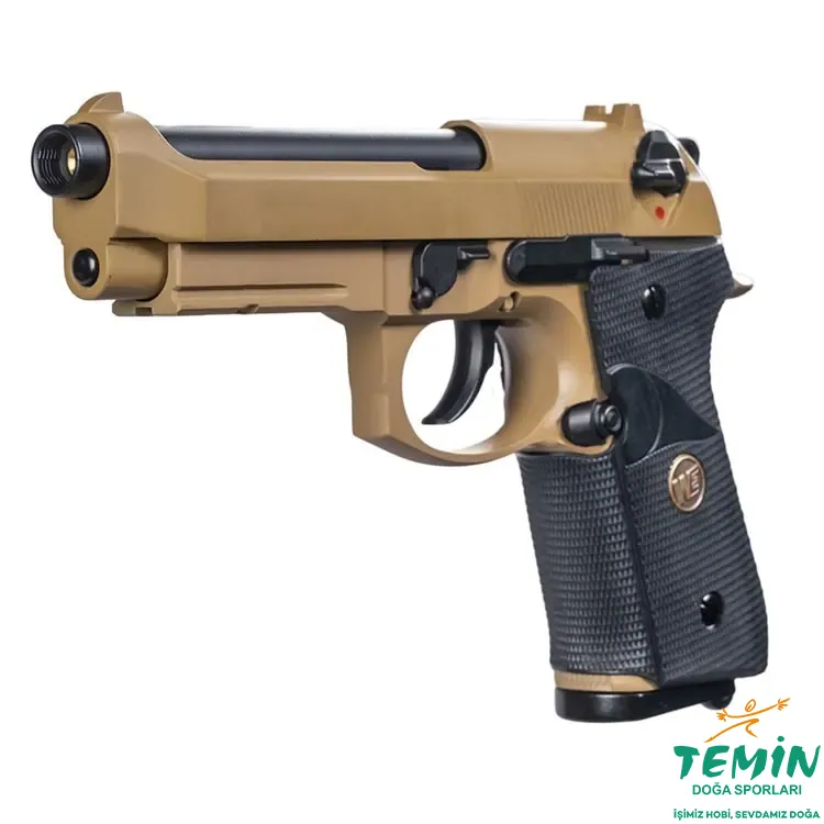 M9A1 platformunun sevilen çizgisini tan renkli Navy Edition görünümle bir araya getiren bu model, yalnızca airsoft performansı arayanlara değil; elde dolgun duran, sağlam his veren ve vitrinde de dikkat çeken bir tabanca isteyen kullanıcılara hitap eder.