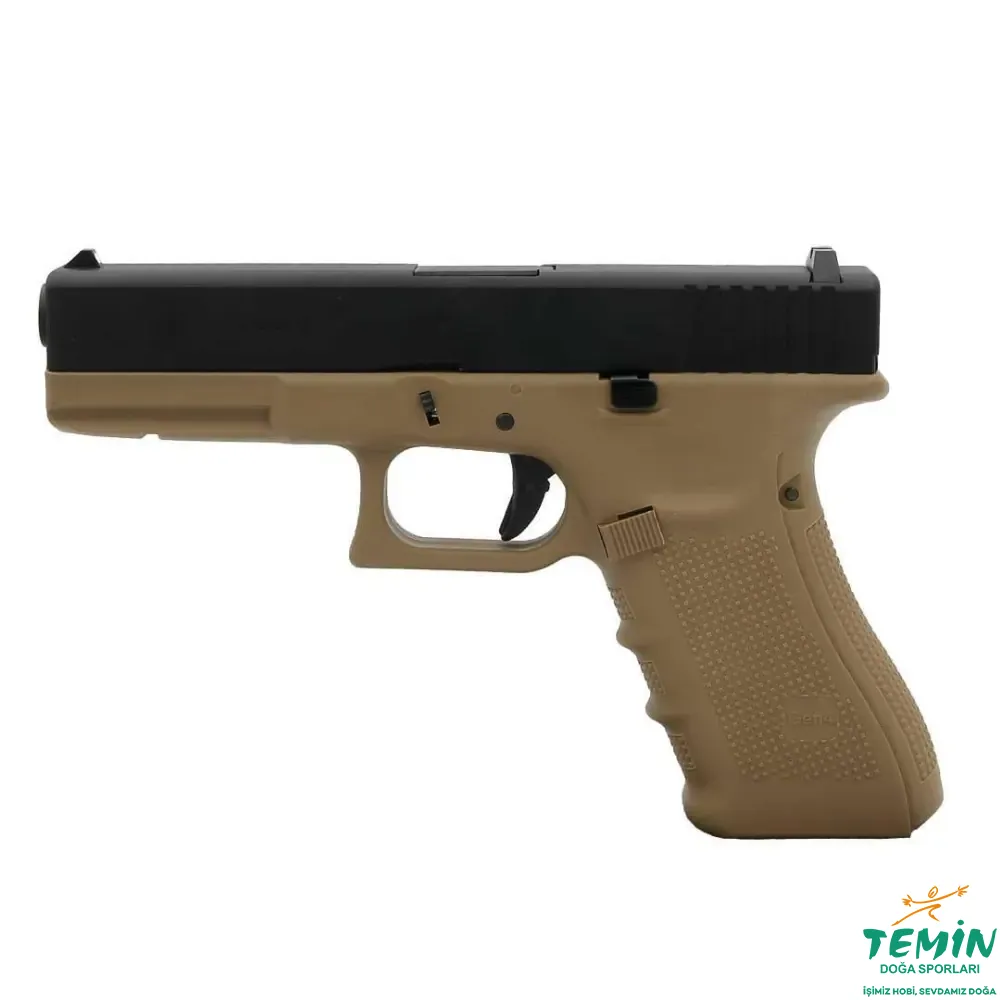 Sade siyah modellerden farklı olarak bu ürünün öne çıkan yönü; dikkat çekici ama abartısız tan renk görünümü, güçlü duruşu ve geniş kullanıcı kitlesine hitap eden klasik G17 formudur.