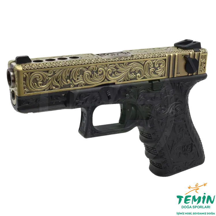 Standart ve sade modellerden ayrılan ivory gravürlü dış görünümü sayesinde bu model, yalnızca bir airsoft tabanca arayanlara değil; vitrinde fark yaratan, koleksiyon havası taşıyan ve eline aldığında farklı hissettiren bir seçenek isteyen kullanıcılara da hitap eder.