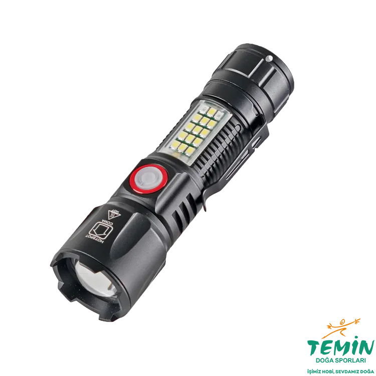 Wison WS-2828 ultra güçlü USB şarjlı polis el feneri, 1000 lümen ışık, ZOOM yakınlaştırma, kırmızı ve mavi çakar fonksiyonu olan kaliteli bir el feneridir.