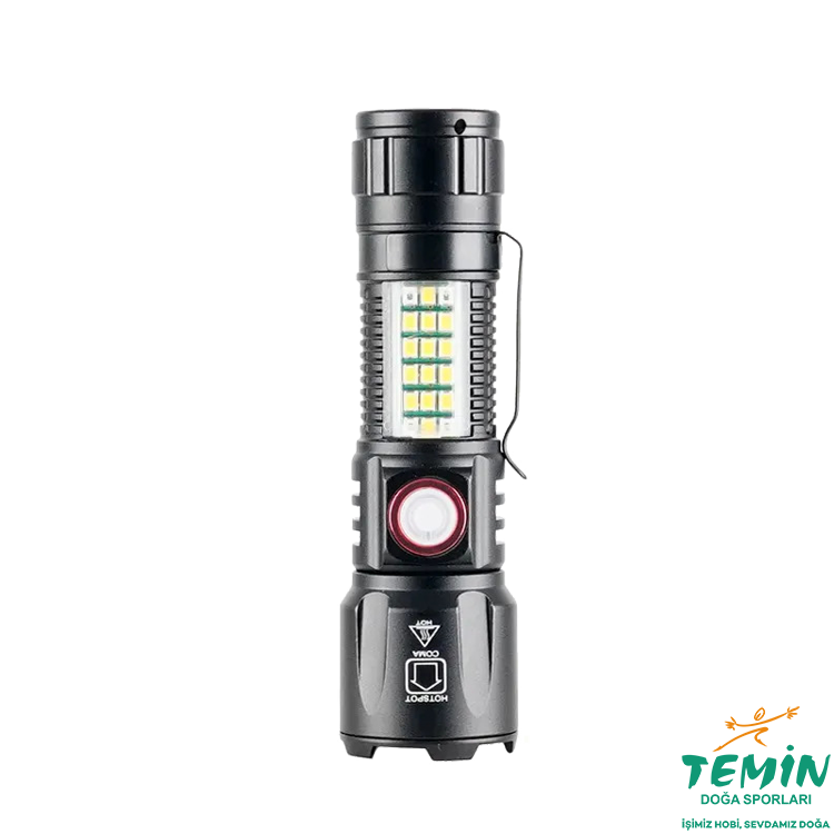 5 Aydınlatma Modu : Güçlü ışık, zayıf ışık, flaşör, yan COB LED gün ışığı renk, COB kırmızı mavi çakar aydınlatma.
